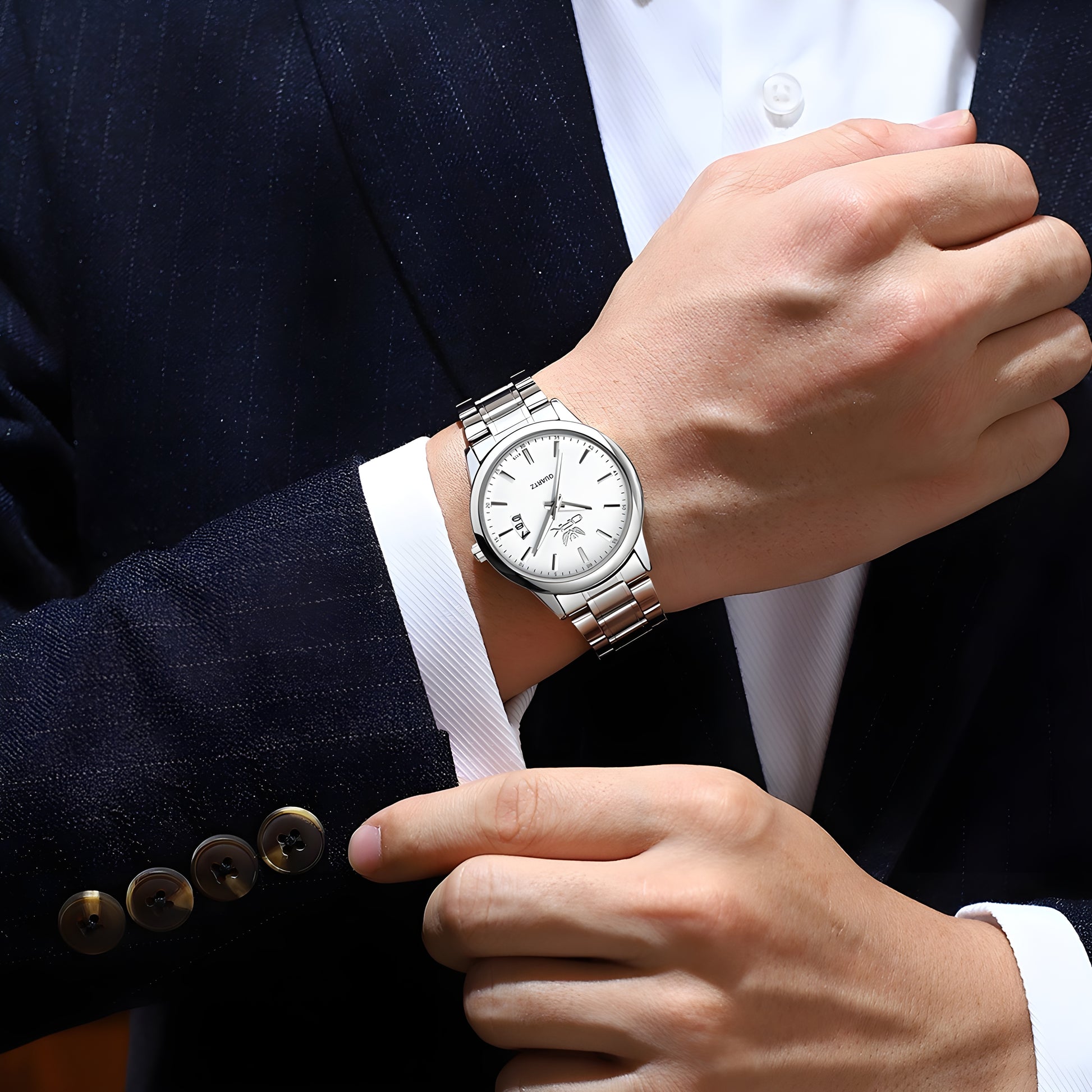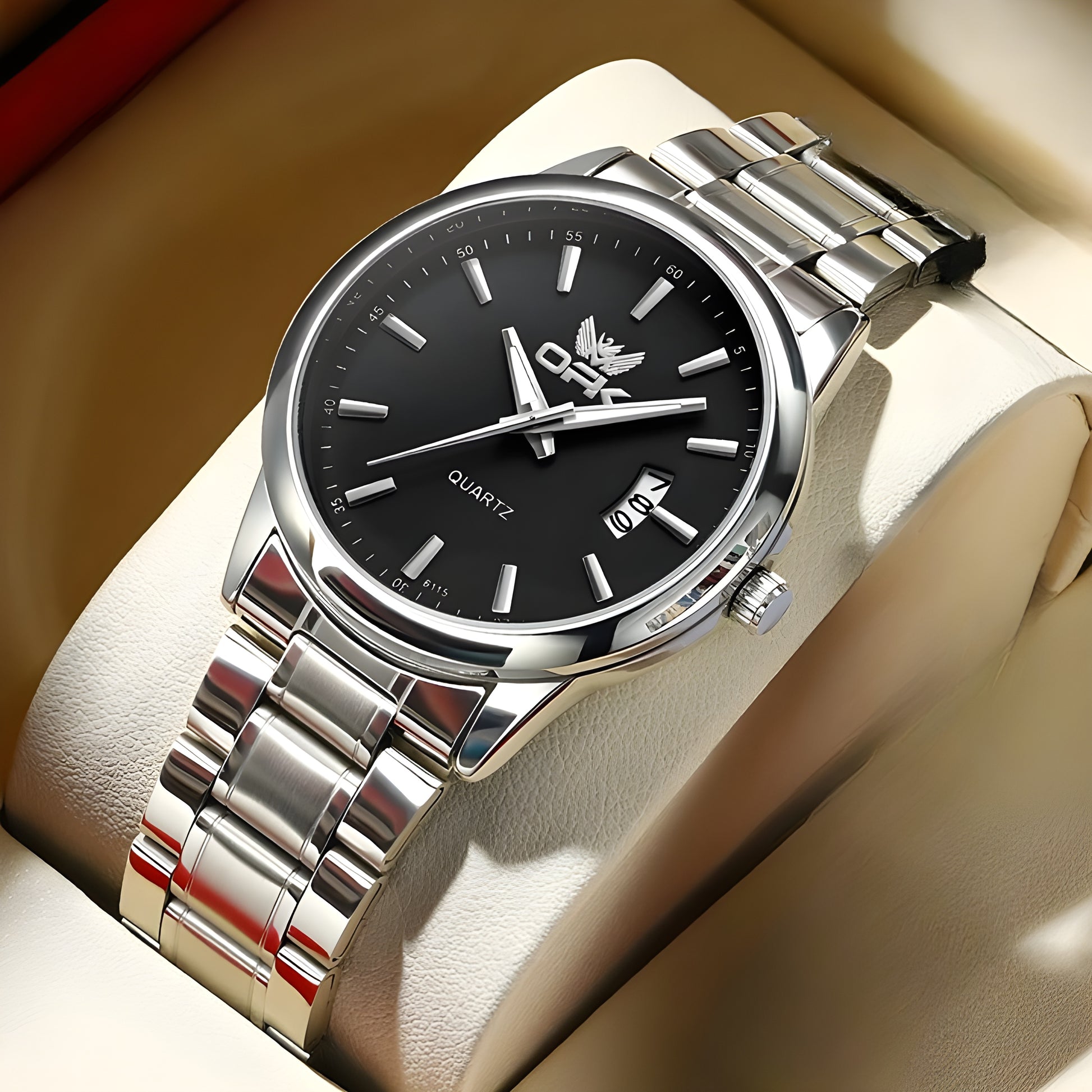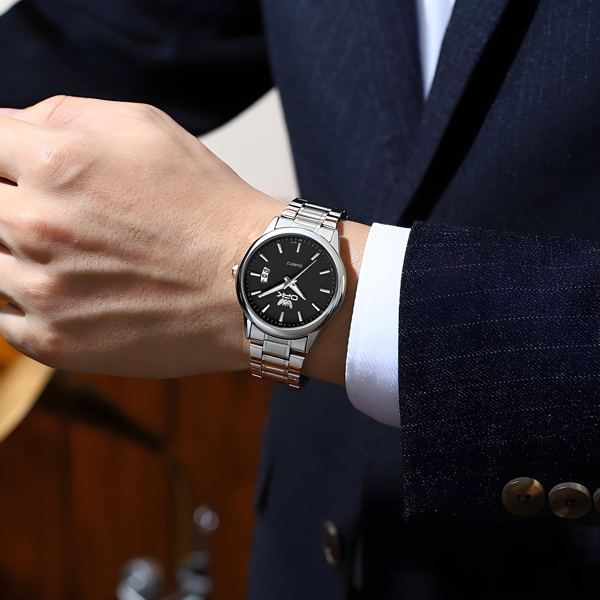 O Relógio Sir é a representação da sobriedade e elegância, fruto da fusão entre precisão técnica com um design minimalista, caracterizado por linhas retas e acabamento em aço que transmitem segurança. O calendário inclinado adiciona um elemento inovador, fazendo dele a opção ideal para quem valoriza um estilo distinto e sofisticado com naturalidade.